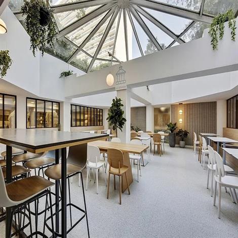 Plus on change de posture de travail dans une journée, plus on est efficace. En dehors des heures de déjeuner, les espaces de restauration se transforment en grand co working. Les salons, les espaces en gradin... invitent au travail informel en petite ou grande équipe.